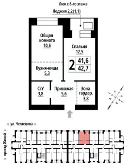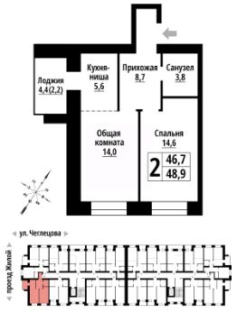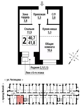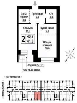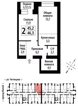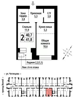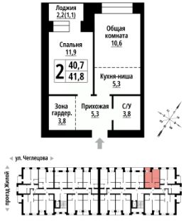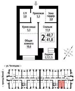 2-к, Чеглецова, 25а корп. 1 Показать на карте