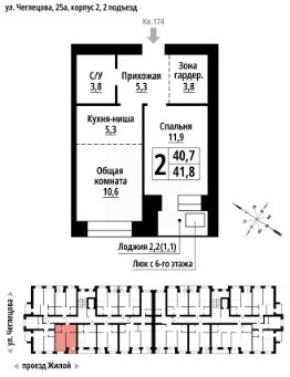 2-к, Чеглецова, 25а корп. 2 Показать на карте