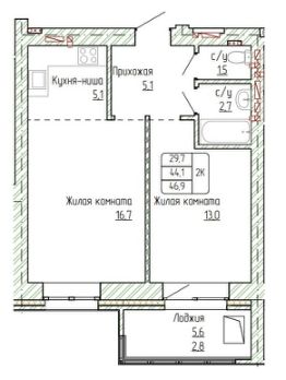 44 м2