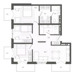 Продаётся 4-комнатная квартира в строящемся доме (Корпус 1 (БС 1,2,3)), срок сдачи: II-кв. 2026, общей площадью 83.9 кв.м., на 5 этаже. Новый жилой комплекс ''Вышка зелёный квартал на горе'' от группы компаний ''Мой дом'' расположен по адресу: г. Барнаул, по ул. Змеиногорский тракт.