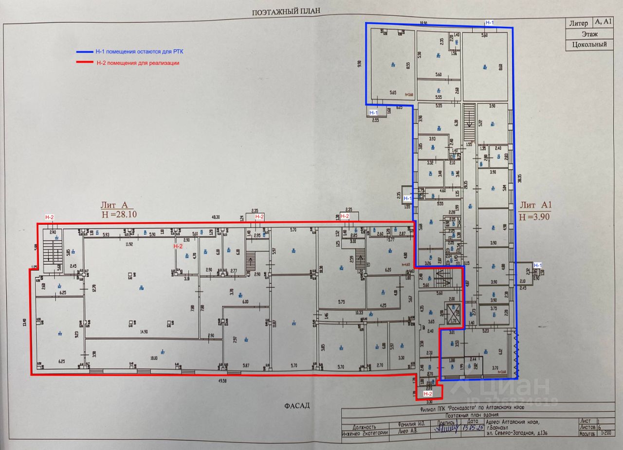 В целях изучения спроса ПАО ''Ростелеком'' предлагает к рассмотрению реализацию 5 этажного здания общей площадью 4380 кв.м., на собственном земельном участке. Год постройки 1982, Материал стен кирпич, обшивка сайдингом, перегородки кирпичные. Фундамент железобетонный. Перекрытия ж/б плиты, крыша плоская. Здание в хорошем состоянии. Коммуникации центральные: Электроснабжение есть, Теплоснабжение есть, Водоснабжение есть. Объект недвижимости находится на собственном земельном участке (3359/3423 доля в праве собственности на Земельный участок) Кадастровый 22:63:040106:7 Земельный участок площадью 3 423 кв. м., доля соответствует 3 359 кв.м. Расположен по адресу: Алтайский край, г. Барнаул, ул. Северо-Западная, д. 13Б Категория земель: Земли населенных пунктов Разрешенное использование: Под существующую территорию АТС Статус земельного участка: ранее учтенный. Продажа от собственника — ПАО ''Ростелеком''. Цена указана с учетом НДС 22%. Цена не окончательная, будет уточнение площадей и оценка объекта. Звоните! С удовольствием ответим на все вопросы, расскажем о других объектах региона.