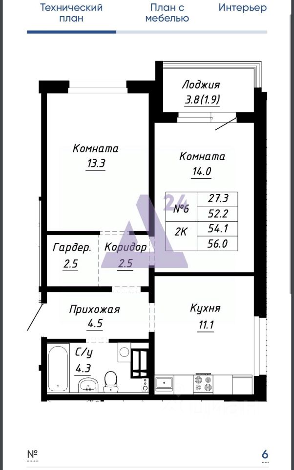 56 м² · Этаж 9 из 23