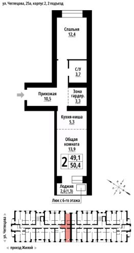 2-к, Чеглецова, 25а корп. 2 Показать на карте