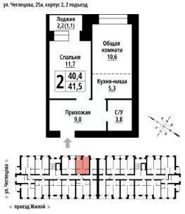 2-к, Чеглецова, 25а корп. 2 Показать на карте