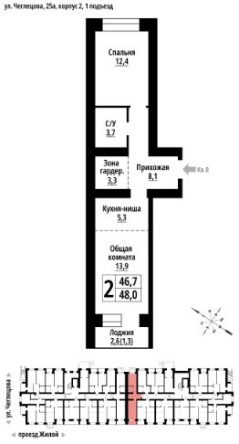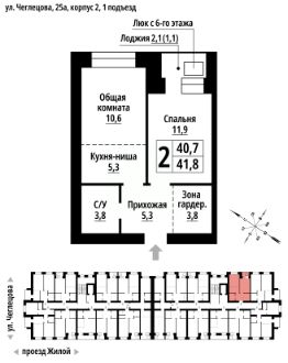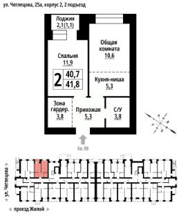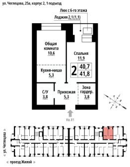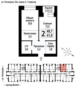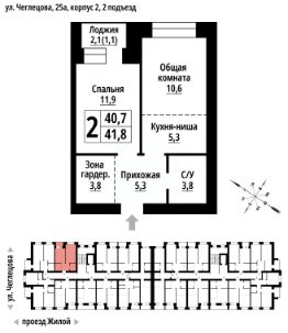 2-к, Чеглецова, 25а корп. 2 Показать на карте