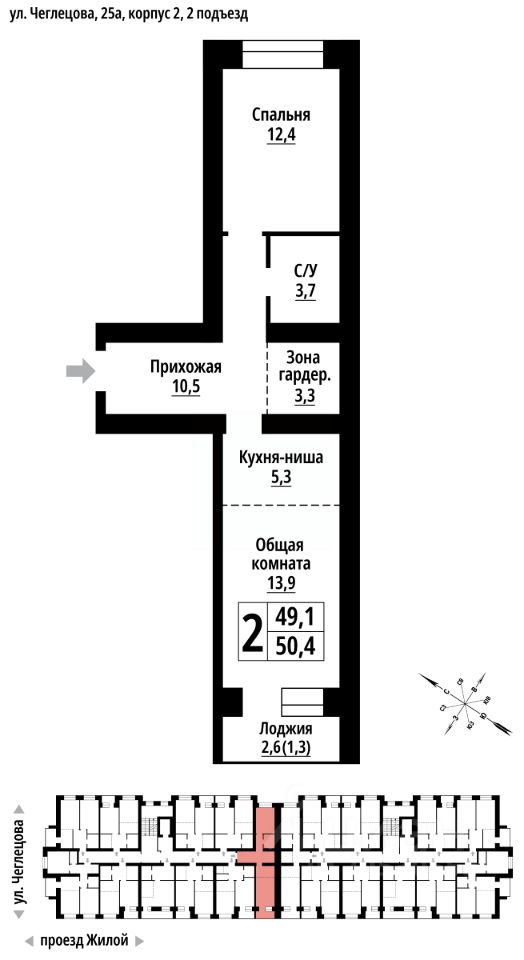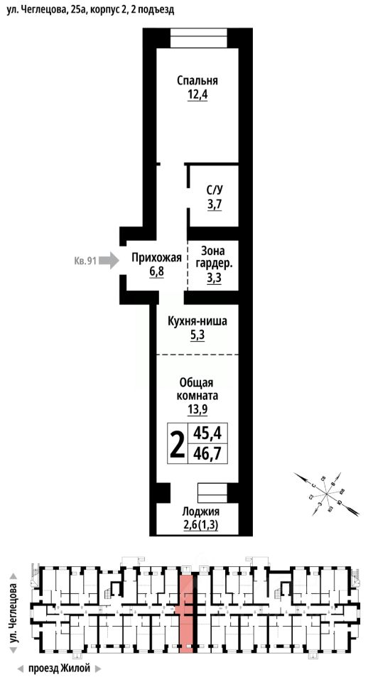 2-к, Чеглецова, 25а корп. 2
