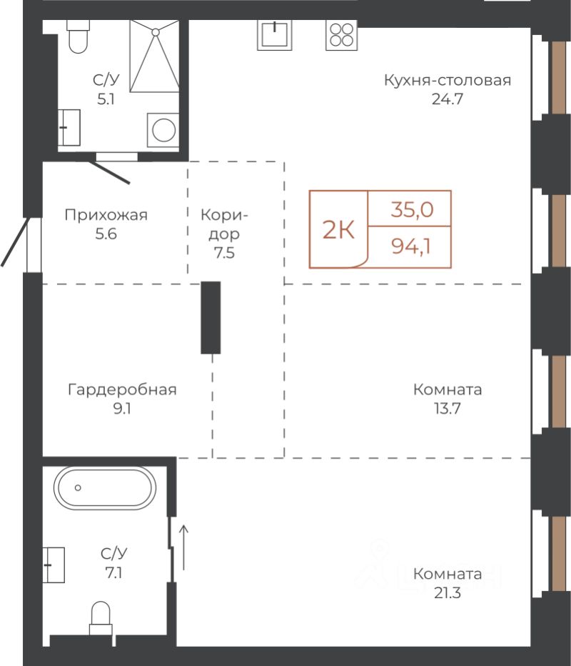 122 м² · Этаж 24 из 27