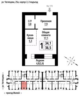 1-к, Чеглецова, 25а корп. 2 Показать на карте