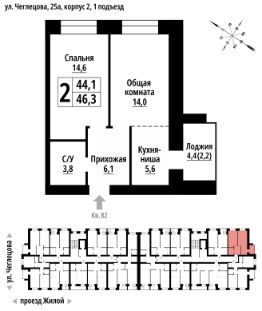 2-к, Чеглецова, 25а корп. 2 Показать на карте