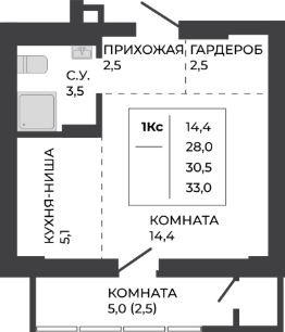 44 м2