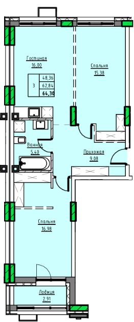 Продаётся 2-комнатная квартира в строящемся доме (Дом 1), срок сдачи: II-кв. 2029, общей площадью 48.8 кв.м., на 5 этаже. 10-ти этажный жилой дом в г. Заринске по адресу пр-т. Строителей, 29в. Проектом предлагается 3-х подъездный, 10-ти этажный жилой дом с встроенными на первом этаже помещениями общественного назначения. Исходя из ориентации дома входы в подъезды предусмотрены со стороны двора, тогда как в нежилые помещения - со стороны пр-т. Строителей. Вокруг здания предусматривается круговой проезд для автомобильного транспорта. Парковки для постоянного, временного хранения автомобилей, а также парковки для нежилых помещений предусмотрены, при этом согласно нормативам градостроительного проектирования Алтайского края от 29.12.2022 N 537, машино-мест может располагаться на прилегающей территории более 90 штук. Детские, спортивные площадки запроектированы с учетом нормативных расстояний от жилья и парковок. В жилом доме предусмотрено 222 квартир в том числе: Студии - 841-комн. - 482-х комн. - 543-х комн. - 304-х комн. - 6Имеется возможность объединения квартир для увеличения площади. Высота первого этажа - 3,6 м, жилых этажей - 3 м. В подвале предусмотрены кладовые для хранения негорючих вещей жильцов. В каждом подъезде имеется лестничная клетка и два лифта - пассажирский грузоподъемностью 400 кг и грузопассажирский грузоподъемностью 630 кг. Практически каждая квартира имеет выход на просторную застекленную лоджию площадью 6-9 кв.м. Все окна увеличенной высоты, что обеспечивает максимальное дневное освещение квартир. Часть квартир дополнительно оборудована мастер спальнями и гардеробными. Конструктивная схема монолитный железобетонный каркас с заполнением кирпичом и газобетоном с утеплителем. Облицовка 1-2 этажей клинкерным кирпичом. Выше штукатурка по стене. Окна - из металлопластика. Витражи 1-го этажа, остекления балконов - алюминиевые. Прилегающая территория к дому комплексно благоустраивается с асфальтированием проездов, озеленением и тротуарной плиткой. Площадки для игр детей и занятия спортом укомплектовываются элементами заводского изготовления. Жилой дом после строительства украсит центральную часть г. Заринска.
