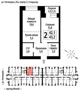 2-к, Чеглецова, 25а корп. 2 Показать на карте