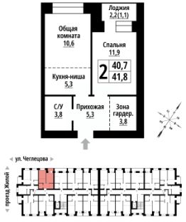 3-к, Чеглецова, 25а корп. 1 Показать на карте