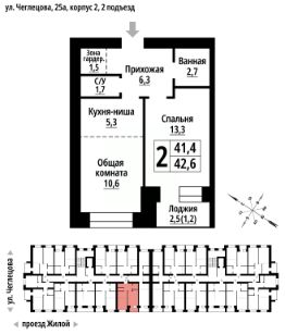 2-к, Чеглецова, 25а корп. 2 Показать на карте