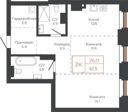 2-к, им В.Н.Баварина площадь, 8 корп. 1 Показать на карте