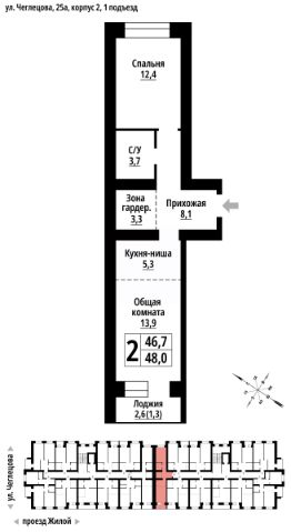 2-к, Чеглецова, 25а корп. 2 Показать на карте