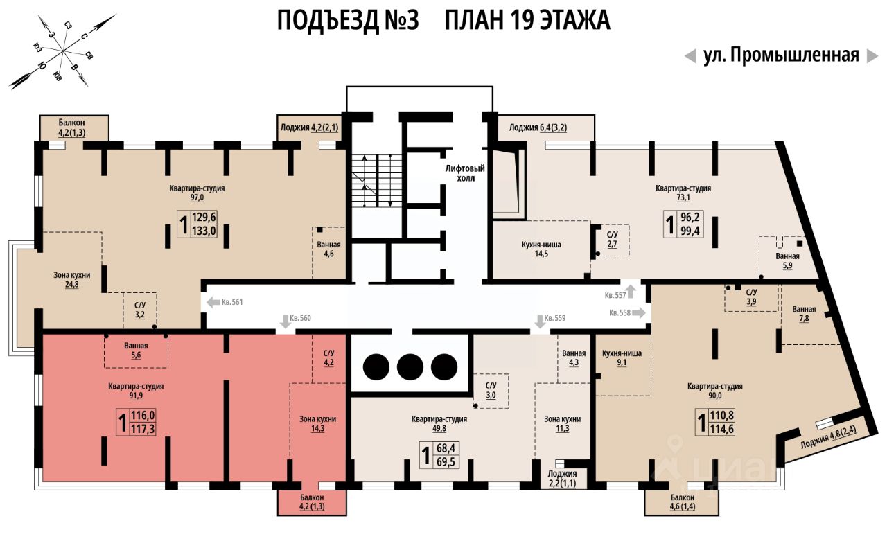 117 м² · Этаж 19 из 23
