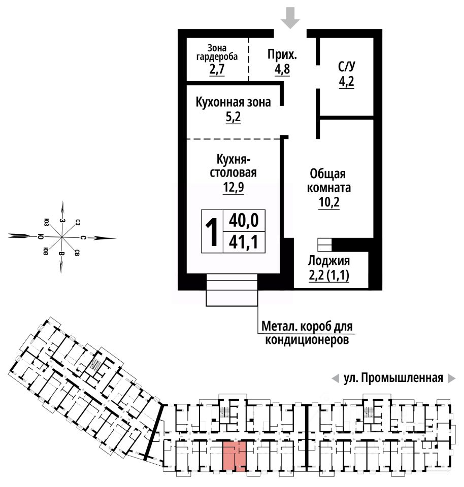 1-к, Промышленная, 10