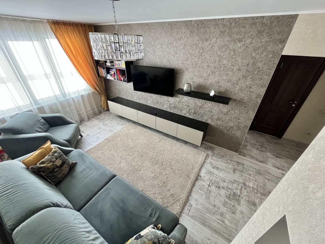 в квартире свежий ремонт,в жилой комнате постелен ламинат,кухня коридор линолеум,застекленный балкон. удобная развязка,детские сады школы магазины,хорошая транспортная развязка. все вопросы по телефону