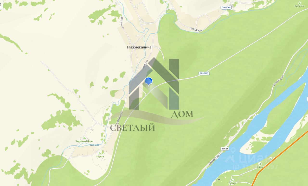 Земля с плодородной почвой в экологически чистом, живописном месте, закрытый от ветра горами, освещенный солнцем. Место тихое, уединенное. Земля в собственности. Расположен в районе с.Нижнекаянча, на берегу горной речки Устюба. К участку проложена дорога, отсыпанная щебнем, Через речку построен железобетонный мост, пробурена скважина, на участке новый КТП на 100КВт. Есть возможность подключиться к оптоволоконному интернету. Участок находится вблизи с тур.базой ''Кедровый Берег''. Достопримечательности и крупные инвест-проекты рядом : - В 4-х км игорная зона '' Алтай Палас'', и мараловодческое хозяйство ''Каим''. -''Бирюзовая катунь'' и строящийся комплекс ''Артек 2''-15 мин.езды на машине. -Горно-лыжный курорт ''Манжерок'' с отелем 5 звезд. -20 мин. -Парк Отель ''Ая'' -20 мин. -Аэропорт Горно-Алтайска, началась реконструкция для международных рейсов.-15-20мин.