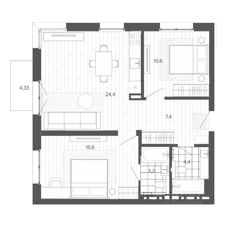 Продаётся 3-комнатная квартира в строящемся доме (Корпус 1 (БС 1,2,3)), срок сдачи: II-кв. 2026, общей площадью 69.93 кв.м., на 8 этаже. Новый жилой комплекс ''Вышка зелёный квартал на горе'' от группы компаний ''Мой дом'' расположен по адресу: г. Барнаул, по ул. Змеиногорский тракт.