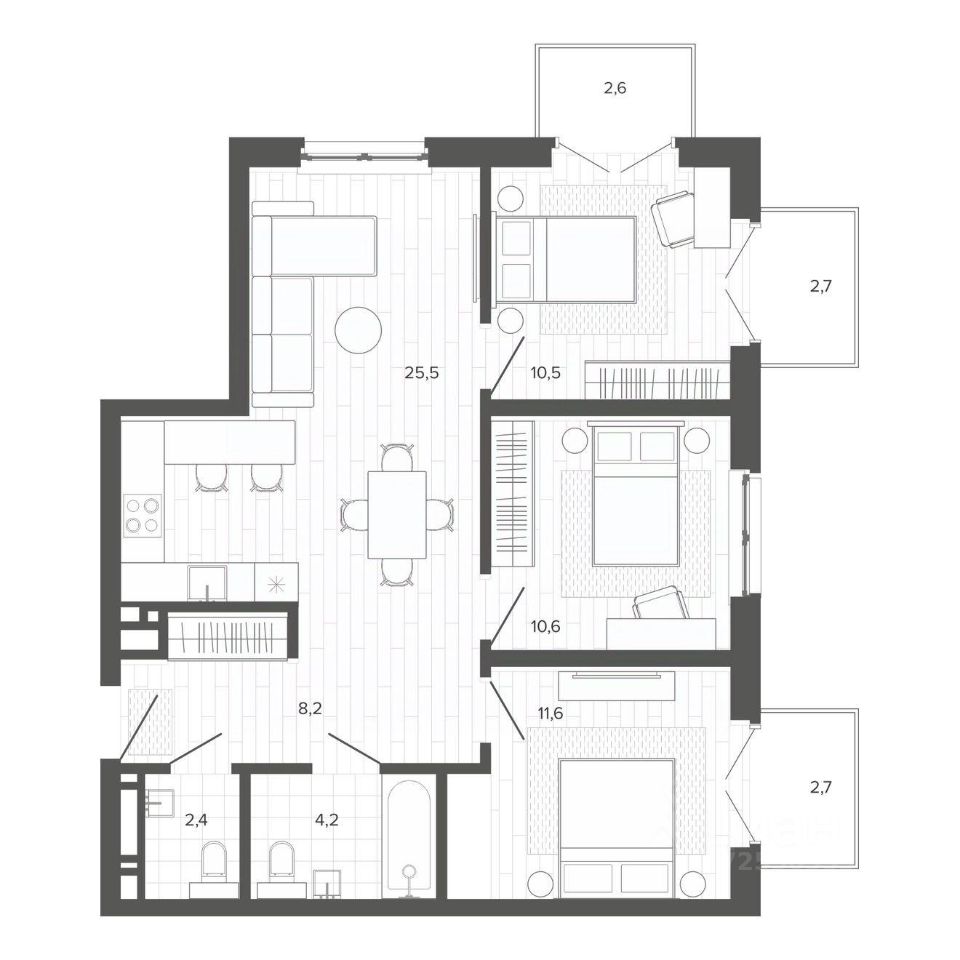 Продаётся 4-комнатная квартира в строящемся доме (Корпус 3), срок сдачи: II-кв. 2026, общей площадью 81.4 кв.м., на 4 этаже. Новый жилой комплекс ''Вышка зелёный квартал на горе'' от группы компаний ''Мой дом'' расположен по адресу: г. Барнаул, по ул. Змеиногорский тракт.