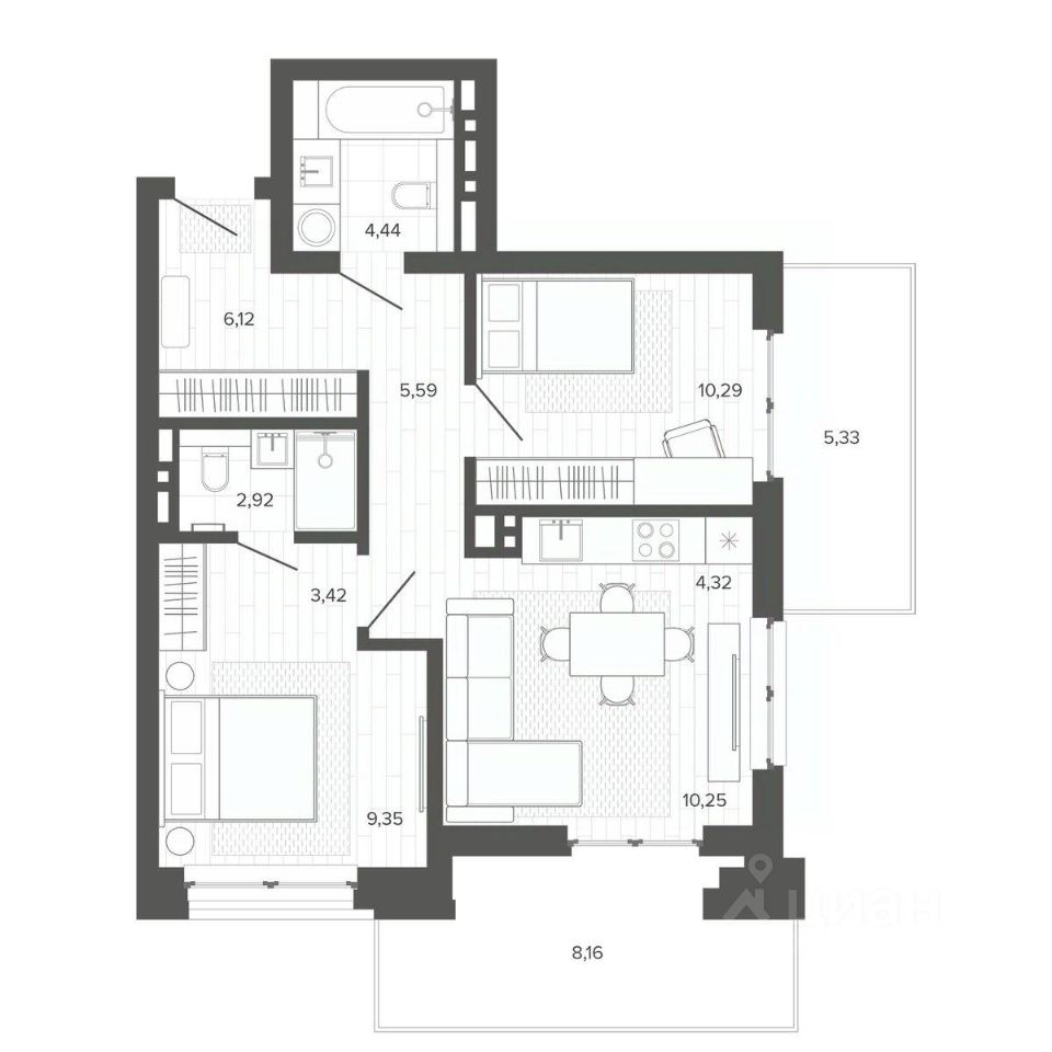 Продаётся 3-комнатная квартира в строящемся доме (Меланж), срок сдачи: IV-кв. 2026, общей площадью 70.19 кв.м., на 3 этаже. Меланж - дом рядом с парком. Эстетика городской жизни Эстетика городской жизни - значит иметь возможность слушать пение птиц, наслаждаться зеленью деревьев, заниматься спортом на свежем воздухе или отправиться на прогулку в любое время. Это не просто архитектурное решение, а отличный повод изменить свои ежедневные привычки, сделать жизнь более интересной и наполненной. Внутреннее благоустройство С помощью зданий будет сформирована закрытая территория. Это разделит пространство на общественное и частное, изолирует двор от городского шума и суеты, превратит его в безопасное и приятное место для отдыха жителей. Двор без машин, игровые площадки и зелёное зонирование - атрибуты более высокого качества жизни в домах комфорт класса. Архитектура В фасаде будут использованы благородные и ''тёплые'' материалы - кирпич. Это придаст зданию эстетическую привлекательность, практичность и долговечность. Архитектура дома, не только сохранит историю и традиции, но и подчеркнет его особую изысканность и индивидуальность на фоне современной застройки. Планировки для каждого Каждая планировка квартиры - тщательно продуманное решение, основанное на индивидуальных сценариях жизни будущих жильцов. Квартиры с окном в ванной, гостиная с шестиметровыми витражами или уютные апартаменты с отдельным входом направлены на формирование неповторимого образа жизни будущих владельцев недвижимости.