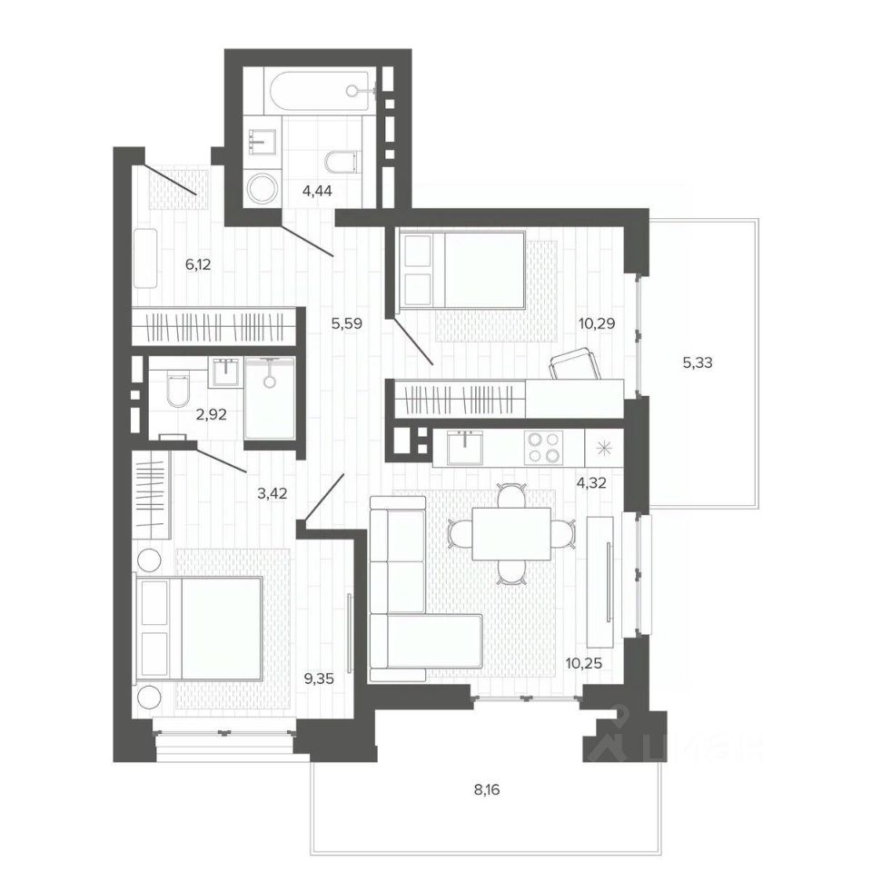 Продаётся 3-комнатная квартира в строящемся доме (Меланж), срок сдачи: IV-кв. 2026, общей площадью 70.19 кв.м., на 6 этаже. Меланж - дом рядом с парком. Эстетика городской жизни Эстетика городской жизни - значит иметь возможность слушать пение птиц, наслаждаться зеленью деревьев, заниматься спортом на свежем воздухе или отправиться на прогулку в любое время. Это не просто архитектурное решение, а отличный повод изменить свои ежедневные привычки, сделать жизнь более интересной и наполненной. Внутреннее благоустройство С помощью зданий будет сформирована закрытая территория. Это разделит пространство на общественное и частное, изолирует двор от городского шума и суеты, превратит его в безопасное и приятное место для отдыха жителей. Двор без машин, игровые площадки и зелёное зонирование - атрибуты более высокого качества жизни в домах комфорт класса. Архитектура В фасаде будут использованы благородные и ''тёплые'' материалы - кирпич. Это придаст зданию эстетическую привлекательность, практичность и долговечность. Архитектура дома, не только сохранит историю и традиции, но и подчеркнет его особую изысканность и индивидуальность на фоне современной застройки. Планировки для каждого Каждая планировка квартиры - тщательно продуманное решение, основанное на индивидуальных сценариях жизни будущих жильцов. Квартиры с окном в ванной, гостиная с шестиметровыми витражами или уютные апартаменты с отдельным входом направлены на формирование неповторимого образа жизни будущих владельцев недвижимости.