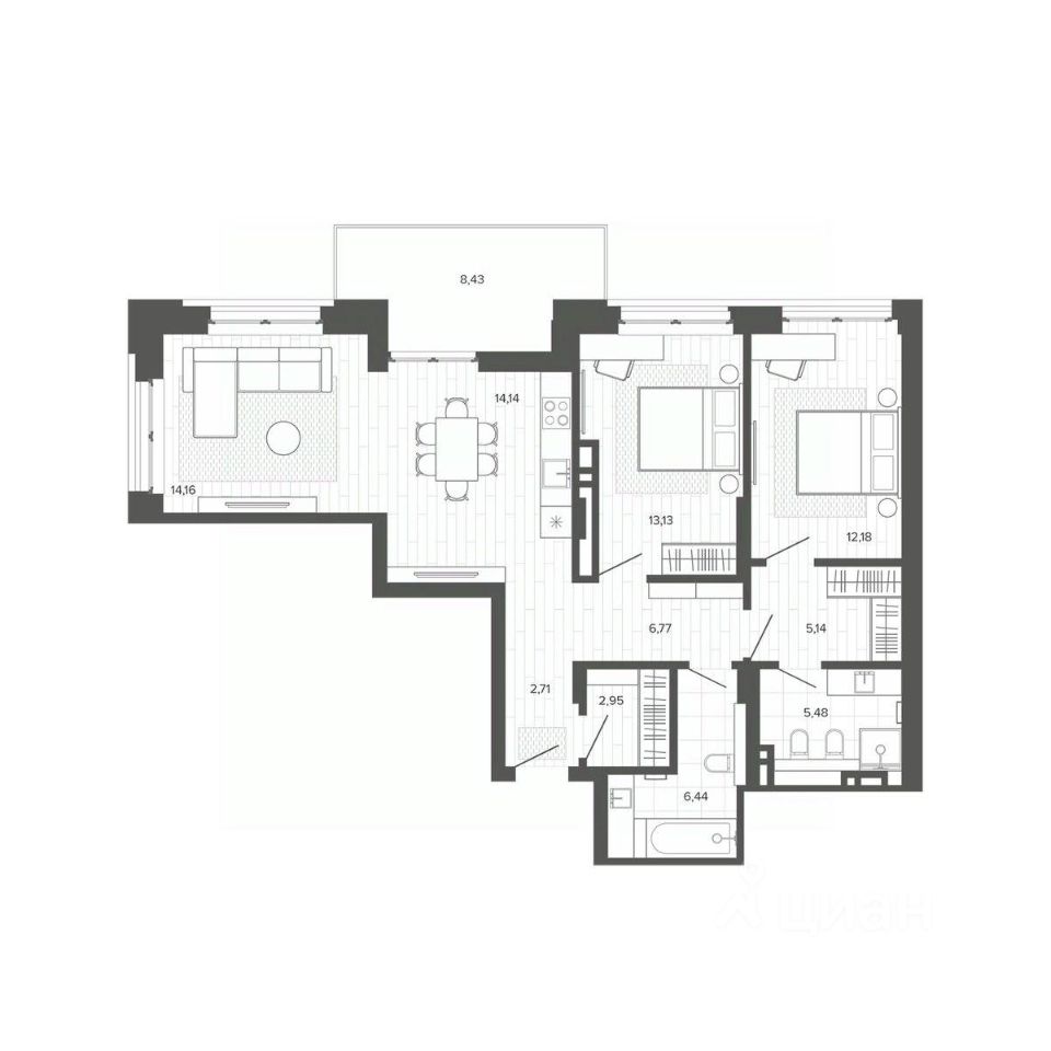 Продаётся 2-комнатная квартира в строящемся доме (Меланж), срок сдачи: IV-кв. 2026, общей площадью 91.53 кв.м., на 7 этаже. Меланж - дом рядом с парком. Эстетика городской жизни Эстетика городской жизни - значит иметь возможность слушать пение птиц, наслаждаться зеленью деревьев, заниматься спортом на свежем воздухе или отправиться на прогулку в любое время. Это не просто архитектурное решение, а отличный повод изменить свои ежедневные привычки, сделать жизнь более интересной и наполненной. Внутреннее благоустройство С помощью зданий будет сформирована закрытая территория. Это разделит пространство на общественное и частное, изолирует двор от городского шума и суеты, превратит его в безопасное и приятное место для отдыха жителей. Двор без машин, игровые площадки и зелёное зонирование - атрибуты более высокого качества жизни в домах комфорт класса. Архитектура В фасаде будут использованы благородные и ''тёплые'' материалы - кирпич. Это придаст зданию эстетическую привлекательность, практичность и долговечность. Архитектура дома, не только сохранит историю и традиции, но и подчеркнет его особую изысканность и индивидуальность на фоне современной застройки. Планировки для каждого Каждая планировка квартиры - тщательно продуманное решение, основанное на индивидуальных сценариях жизни будущих жильцов. Квартиры с окном в ванной, гостиная с шестиметровыми витражами или уютные апартаменты с отдельным входом направлены на формирование неповторимого образа жизни будущих владельцев недвижимости.