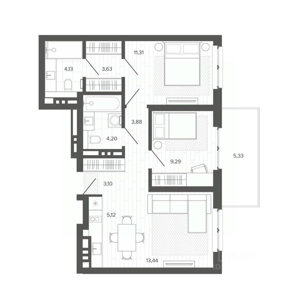 Продаётся 3-комнатная квартира в строящемся доме (Меланж), срок сдачи: IV-кв. 2026, общей площадью 63.43 кв.м., на 7 этаже. Меланж - дом рядом с парком. Эстетика городской жизни Эстетика городской жизни - значит иметь возможность слушать пение птиц, наслаждаться зеленью деревьев, заниматься спортом на свежем воздухе или отправиться на прогулку в любое время. Это не просто архитектурное решение, а отличный повод изменить свои ежедневные привычки, сделать жизнь более интересной и наполненной. Внутреннее благоустройство С помощью зданий будет сформирована закрытая территория. Это разделит пространство на общественное и частное, изолирует двор от городского шума и суеты, превратит его в безопасное и приятное место для отдыха жителей. Двор без машин, игровые площадки и зелёное зонирование - атрибуты более высокого качества жизни в домах комфорт класса. Архитектура В фасаде будут использованы благородные и ''тёплые'' материалы - кирпич. Это придаст зданию эстетическую привлекательность, практичность и долговечность. Архитектура дома, не только сохранит историю и традиции, но и подчеркнет его особую изысканность и индивидуальность на фоне современной застройки. Планировки для каждого Каждая планировка квартиры - тщательно продуманное решение, основанное на индивидуальных сценариях жизни будущих жильцов. Квартиры с окном в ванной, гостиная с шестиметровыми витражами или уютные апартаменты с отдельным входом направлены на формирование неповторимого образа жизни будущих владельцев недвижимости.