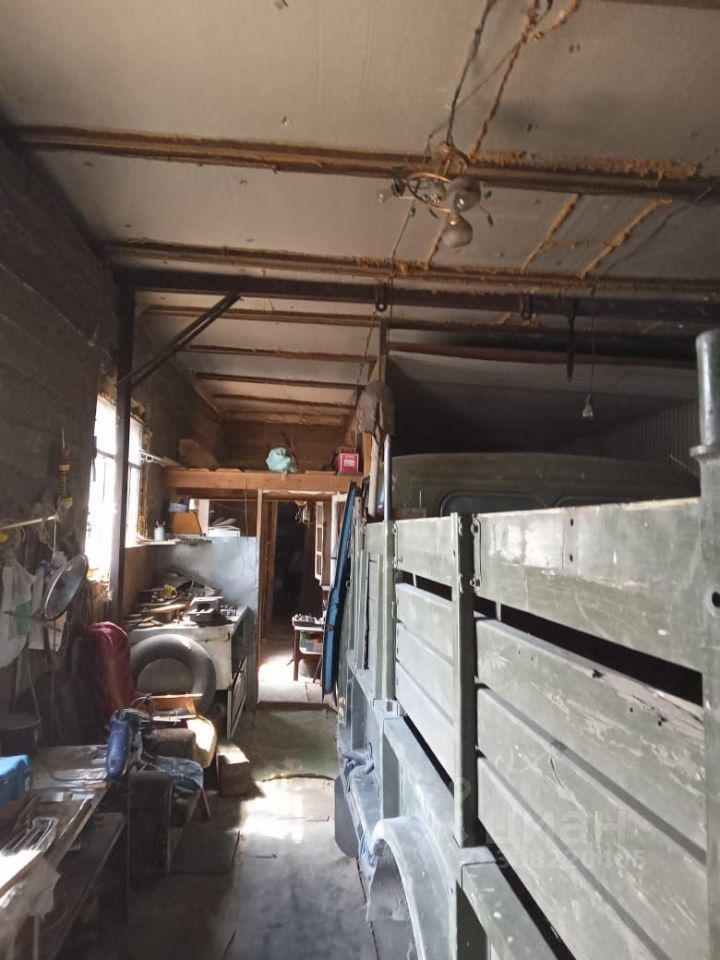 На участке 12 соток. Два гаража (6 х 11) (3 х 9) метров. Баня (3 х 6) холодная вода круглогодично. Слесарка (3 х 3) метров. Три сарая рубленые, общей площадью 100 м2. Все постройки под одной крышей, покрытой железом. Огород 12 соток, удобренный. Канализация, 12 м3.