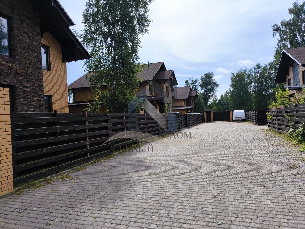 Земельный участок огорожен забором, находится в закрытой территории с общим входом и постом охраны. Дорога до участка отсыпана асфальтной крошкой, а общая территория выложена тротуарной плиткой.