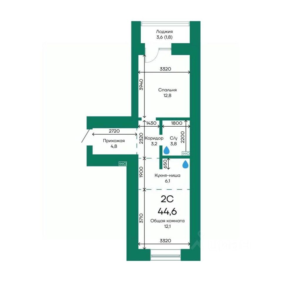 Продаётся 2-комнатная квартира в строящемся доме (Корпус 2), срок сдачи: III-кв. 2026, общей площадью 44.6 кв.м., на 1 этаже.