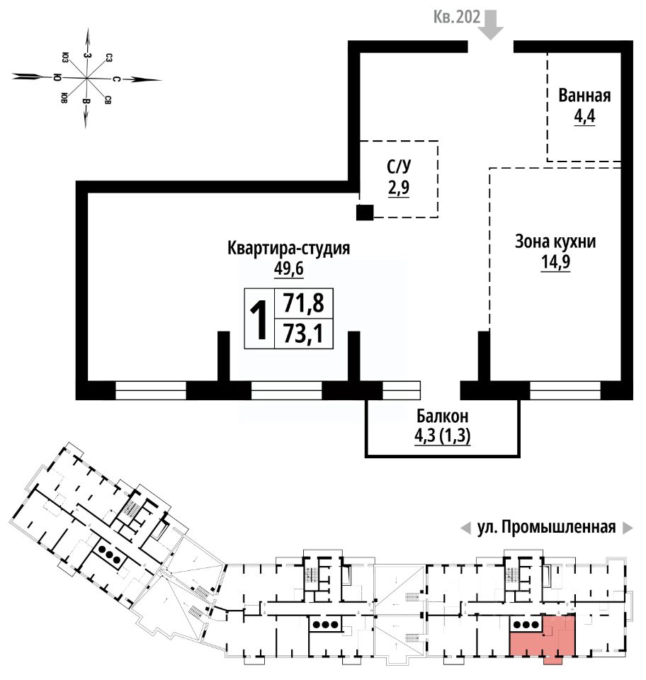 продам 1-к, Промышленная, 1014 013 270 ₽