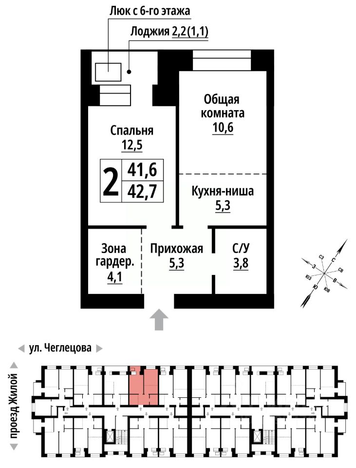 Продаётся 2-комнатная квартира в строящемся доме (Корпус 1), срок сдачи: II-кв. 2027, общей площадью 42 кв.м., на 6 этаже. ЖК ''Тургенев'' на ул. Чеглецова, 25а представляет из себя два кирпичных здания высотой 9 этажей. Предлагаем к покупке первый корпус, состоящий из двух подъездов. В каждом запроектированы квартиры с продуманной планировкой от 34,8-57,7 квадратных метров. Фасады выполнены в стилизованных формах с использованием остекленных лоджий и архитектурной подсветкой. Высота 1 и 9 этажа - 3 метра. На первом этаже предусмотрены нежилые помещения с гибким функциональным назначением.