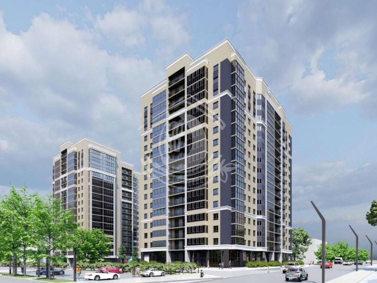 Современный жилой комплекс с кирпичными домами, закрытой территорией, подземным паркингом.
