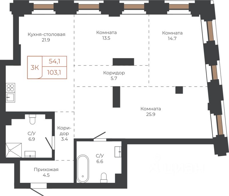 Продаётся 3-комнатная квартира в строящемся доме (Башня ''Мира'' (Корпус 2)), срок сдачи: I-кв. 2030, общей площадью 103.1 кв.м., на 4 этаже. Две башни формируют принципиально новое городское life-style пространство для жителеи и горожан. Единыи ансамбль площади Баварина и набережнои станет новым городским центром. АРХИТЕКТУРНЫЙ КОМПЛЕКС СТАНЕТ СИМВОЛИЧЕСКИМИ ВОРОТАМИ В ГОРОД И ЕГО ВИЗИТНОИ КАРТОЧКОИ И ОТРАЗИТ РАЗВИТИЕ БАРНАУЛА. Инфраструктура и расположение ТЕРРИТОРИЯ КОМПЛЕКСА - ВАЖНАЯ ТОЧКА, СВЯЗЫВАЮЩАЯ ДЕЛОВОИ И КУЛЬТУРНЫИ ЦЕНТРЫ БАРНАУЛА. БАШНИ ЗАМЫКАЮТ СТВОР УЛИЦЫ ЛЕНИНА И СЛУЖАТ ГОРОДСКИМИ ВОРОТАМИ НА НАБЕРЕЖНУЮ. Башни ''Столица'' и ''Мира'' будут буквально парить в воздухе у набережной. Дома установят на стилобат - платформу до высоты третьего этажа.