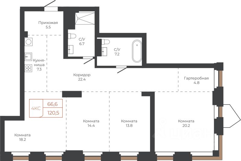 Продаётся 4-комнатная квартира в строящемся доме (Башня ''Столица'' (Корпус 1)), срок сдачи: I-кв. 2030, общей площадью 120.5 кв.м., на 15 этаже. Две башни формируют принципиально новое городское life-style пространство для жителеи и горожан. Единыи ансамбль площади Баварина и набережнои станет новым городским центром. АРХИТЕКТУРНЫЙ КОМПЛЕКС СТАНЕТ СИМВОЛИЧЕСКИМИ ВОРОТАМИ В ГОРОД И ЕГО ВИЗИТНОИ КАРТОЧКОИ И ОТРАЗИТ РАЗВИТИЕ БАРНАУЛА. Инфраструктура и расположение ТЕРРИТОРИЯ КОМПЛЕКСА - ВАЖНАЯ ТОЧКА, СВЯЗЫВАЮЩАЯ ДЕЛОВОИ И КУЛЬТУРНЫИ ЦЕНТРЫ БАРНАУЛА. БАШНИ ЗАМЫКАЮТ СТВОР УЛИЦЫ ЛЕНИНА И СЛУЖАТ ГОРОДСКИМИ ВОРОТАМИ НА НАБЕРЕЖНУЮ. Башни ''Столица'' и ''Мира'' будут буквально парить в воздухе у набережной. Дома установят на стилобат - платформу до высоты третьего этажа. Решение даст возможность пересекать территорию насквозь через комплекс к реке. Башни создают новые пешеходные связи со стороны улицы Ленина к набережнои.