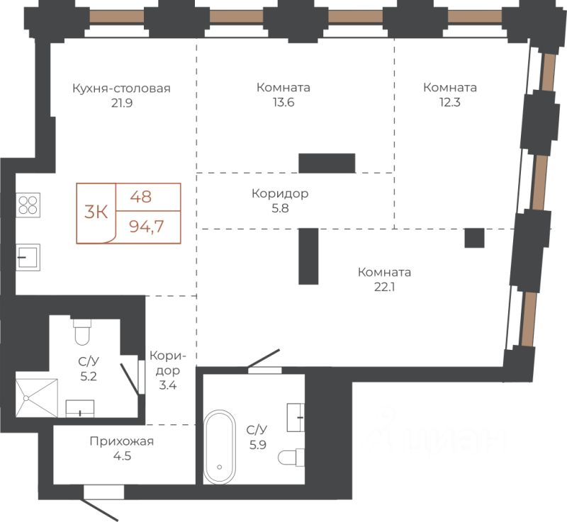 Продаётся 3-комнатная квартира в строящемся доме (Башня ''Мира'' (Корпус 2)), срок сдачи: I-кв. 2030, общей площадью 94.7 кв.м., на 24 этаже. Две башни формируют принципиально новое городское life-style пространство для жителеи и горожан. Единыи ансамбль площади Баварина и набережнои станет новым городским центром. АРХИТЕКТУРНЫЙ КОМПЛЕКС СТАНЕТ СИМВОЛИЧЕСКИМИ ВОРОТАМИ В ГОРОД И ЕГО ВИЗИТНОИ КАРТОЧКОИ И ОТРАЗИТ РАЗВИТИЕ БАРНАУЛА. Инфраструктура и расположение ТЕРРИТОРИЯ КОМПЛЕКСА - ВАЖНАЯ ТОЧКА, СВЯЗЫВАЮЩАЯ ДЕЛОВОИ И КУЛЬТУРНЫИ ЦЕНТРЫ БАРНАУЛА. БАШНИ ЗАМЫКАЮТ СТВОР УЛИЦЫ ЛЕНИНА И СЛУЖАТ ГОРОДСКИМИ ВОРОТАМИ НА НАБЕРЕЖНУЮ. Башни ''Столица'' и ''Мира'' будут буквально парить в воздухе у набережной. Дома установят на стилобат - платформу до высоты третьего этажа. Решение даст возможность пересекать территорию насквозь через комплекс к реке. Башни создают новые пешеходные связи со стороны улицы Ленина к набережнои.