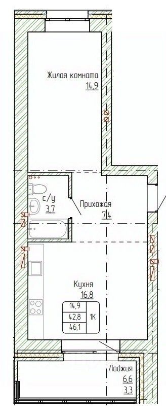 Продаётся 1-комнатная квартира в строящемся доме (Дом 1), срок сдачи: II-кв. 2027, общей площадью 46.1 кв.м., на 6 этаже. Жилой дом от специализированного застройщика ''Жемчужина'' располагается в г. Новоалтайске на ул. Титова, 6. Кирпичный дом состоит из 3-х блок-секций (БС 1 - 9 этажей, БС 2 - 14 этажей, БС 3 - 9 этажей), в каждой блок-секции имеется два входа и один лифт. В новостройке 225 квартир площадью от 31 кв.м. до 80 кв.м., также предусмотрены помещения кладовых в подвальной части дома. Сдача дома - 2 кв 2027 г.
