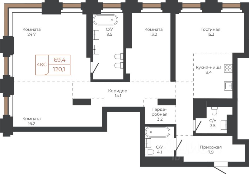 Продаётся 4-комнатная квартира в строящемся доме (Башня ''Мира'' (Корпус 2)), срок сдачи: I-кв. 2030, общей площадью 120.1 кв.м., на 23 этаже. Две башни формируют принципиально новое городское life-style пространство для жителеи и горожан. Единыи ансамбль площади Баварина и набережнои станет новым городским центром. АРХИТЕКТУРНЫЙ КОМПЛЕКС СТАНЕТ СИМВОЛИЧЕСКИМИ ВОРОТАМИ В ГОРОД И ЕГО ВИЗИТНОИ КАРТОЧКОИ И ОТРАЗИТ РАЗВИТИЕ БАРНАУЛА. Инфраструктура и расположение ТЕРРИТОРИЯ КОМПЛЕКСА - ВАЖНАЯ ТОЧКА, СВЯЗЫВАЮЩАЯ ДЕЛОВОИ И КУЛЬТУРНЫИ ЦЕНТРЫ БАРНАУЛА. БАШНИ ЗАМЫКАЮТ СТВОР УЛИЦЫ ЛЕНИНА И СЛУЖАТ ГОРОДСКИМИ ВОРОТАМИ НА НАБЕРЕЖНУЮ. Башни ''Столица'' и ''Мира'' будут буквально парить в воздухе у набережной. Дома установят на стилобат - платформу до высоты третьего этажа. Решение даст возможность пересекать территорию насквозь через комплекс к реке. Башни создают новые пешеходные связи со стороны улицы Ленина к набережнои.