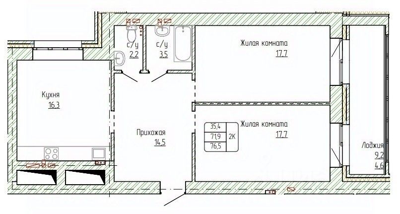 Продаётся 2-комнатная квартира в строящемся доме (Дом 1), срок сдачи: II-кв. 2027, общей площадью 76.5 кв.м., на 8 этаже. Жилой дом от специализированного застройщика ''Жемчужина'' располагается в г. Новоалтайске на ул. Титова, 6. Кирпичный дом состоит из 3-х блок-секций (БС 1 - 9 этажей, БС 2 - 14 этажей, БС 3 - 9 этажей), в каждой блок-секции имеется два входа и один лифт. В новостройке 225 квартир площадью от 31 кв.м. до 80 кв.м., также предусмотрены помещения кладовых в подвальной части дома. Сдача дома - 2 кв 2027 г.