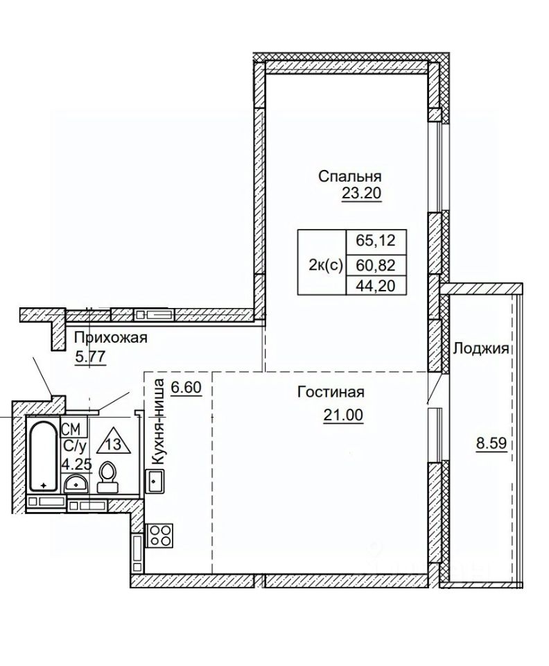 Продаётся 2-комнатная квартира в строящемся доме (Дом 1), срок сдачи: IV-кв. 2027, общей площадью 65.12 кв.м., на 3 этаже. 9 этажный многоквартирный жилой дом с помещениями общественного назначения и подземной автостоянкой, расположенный на пересечение с пр. Комсомольским и ул. Никитина.