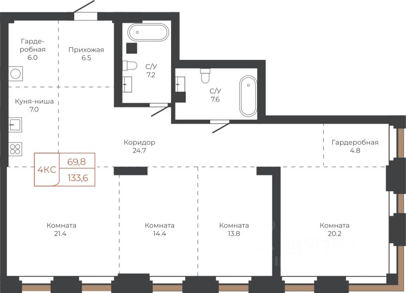Продаётся 4-комнатная квартира в строящемся доме (Башня ''Столица'' (Корпус 1)), срок сдачи: I-кв. 2030, общей площадью 133.6 кв.м., на 4 этаже. Две башни формируют принципиально новое городское life-style пространство для жителеи и горожан. Единыи ансамбль площади Баварина и набережнои станет новым городским центром. АРХИТЕКТУРНЫЙ КОМПЛЕКС СТАНЕТ СИМВОЛИЧЕСКИМИ ВОРОТАМИ В ГОРОД И ЕГО ВИЗИТНОИ КАРТОЧКОИ И ОТРАЗИТ РАЗВИТИЕ БАРНАУЛА. Инфраструктура и расположение ТЕРРИТОРИЯ КОМПЛЕКСА - ВАЖНАЯ ТОЧКА, СВЯЗЫВАЮЩАЯ ДЕЛОВОИ И КУЛЬТУРНЫИ ЦЕНТРЫ БАРНАУЛА. БАШНИ ЗАМЫКАЮТ СТВОР УЛИЦЫ ЛЕНИНА И СЛУЖАТ ГОРОДСКИМИ ВОРОТАМИ НА НАБЕРЕЖНУЮ. Башни ''Столица'' и ''Мира'' будут буквально парить в воздухе у набережной. Дома установят на стилобат - платформу до высоты третьего этажа. Решение даст возможность пересекать территорию насквозь через комплекс к реке. Башни создают новые пешеходные связи со стороны улицы Ленина к набережнои.