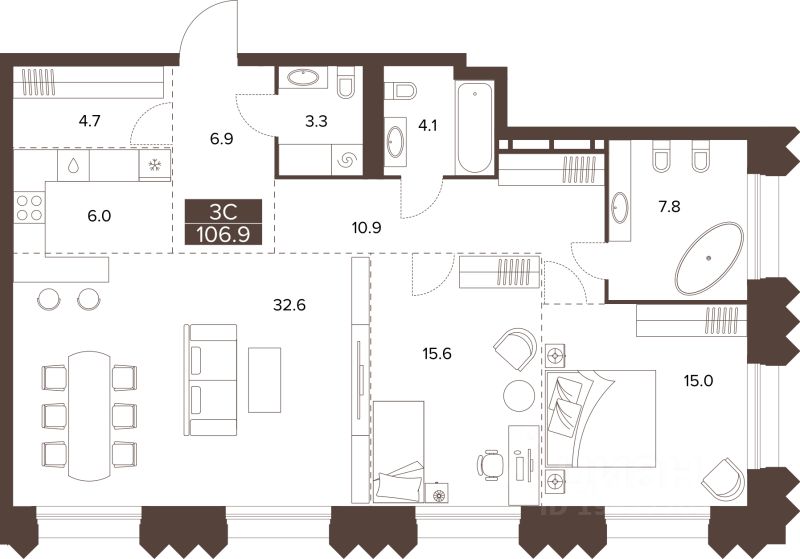Продаётся 3-комнатная квартира в строящемся доме (Башня 2 и секция 2), срок сдачи: III-кв. 2029, общей площадью 106.9 кв.м., на 3 этаже. Новый жилой комплекс ''Сахаров Парк'' от Специализированного застройщика ''ДомСтрой-Барнаул22'' расположен по адресу: г. Барнаул, Социалистический пр-кт.