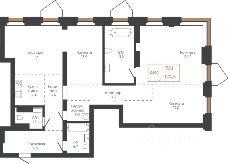 Продаётся 4-комнатная квартира в строящемся доме (Башня ''Столица'' (Корпус 1)), срок сдачи: I-кв. 2030, общей площадью 124.5 кв.м., на 10 этаже. Две башни формируют принципиально новое городское life-style пространство для жителеи и горожан. Единыи ансамбль площади Баварина и набережнои станет новым городским центром. АРХИТЕКТУРНЫЙ КОМПЛЕКС СТАНЕТ СИМВОЛИЧЕСКИМИ ВОРОТАМИ В ГОРОД И ЕГО ВИЗИТНОИ КАРТОЧКОИ И ОТРАЗИТ РАЗВИТИЕ БАРНАУЛА. Инфраструктура и расположение ТЕРРИТОРИЯ КОМПЛЕКСА - ВАЖНАЯ ТОЧКА, СВЯЗЫВАЮЩАЯ ДЕЛОВОИ И КУЛЬТУРНЫИ ЦЕНТРЫ БАРНАУЛА. БАШНИ ЗАМЫКАЮТ СТВОР УЛИЦЫ ЛЕНИНА И СЛУЖАТ ГОРОДСКИМИ ВОРОТАМИ НА НАБЕРЕЖНУЮ. Башни ''Столица'' и ''Мира'' будут буквально парить в воздухе у набережной. Дома установят на стилобат - платформу до высоты третьего этажа. Решение даст возможность пересекать территорию насквозь через комплекс к реке. Башни создают новые пешеходные связи со стороны улицы Ленина к набережнои.
