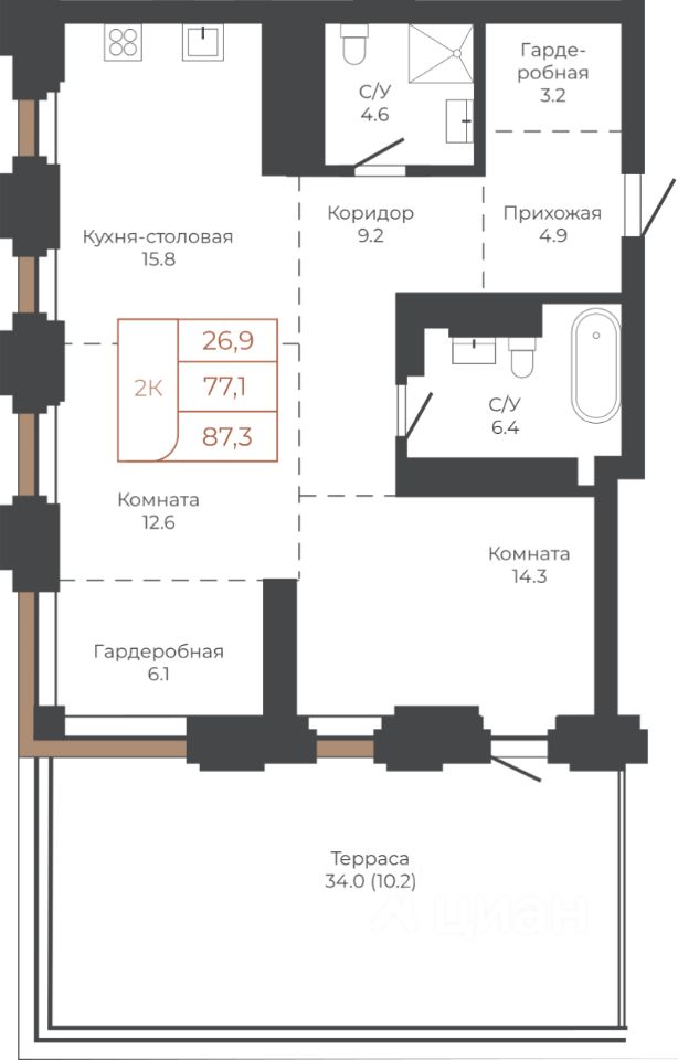Продаётся 2-комнатная квартира в строящемся доме (Башня ''Мира'' (Корпус 2)), срок сдачи: I-кв. 2030, общей площадью 87.3 кв.м., на 18 этаже. Две башни формируют принципиально новое городское life-style пространство для жителеи и горожан. Единыи ансамбль площади Баварина и набережнои станет новым городским центром. АРХИТЕКТУРНЫЙ КОМПЛЕКС СТАНЕТ СИМВОЛИЧЕСКИМИ ВОРОТАМИ В ГОРОД И ЕГО ВИЗИТНОИ КАРТОЧКОИ И ОТРАЗИТ РАЗВИТИЕ БАРНАУЛА. Инфраструктура и расположение ТЕРРИТОРИЯ КОМПЛЕКСА - ВАЖНАЯ ТОЧКА, СВЯЗЫВАЮЩАЯ ДЕЛОВОИ И КУЛЬТУРНЫИ ЦЕНТРЫ БАРНАУЛА. БАШНИ ЗАМЫКАЮТ СТВОР УЛИЦЫ ЛЕНИНА И СЛУЖАТ ГОРОДСКИМИ ВОРОТАМИ НА НАБЕРЕЖНУЮ. Башни ''Столица'' и ''Мира'' будут буквально парить в воздухе у набережной. Дома установят на стилобат - платформу до высоты третьего этажа. Решение даст возможность пересекать территорию насквозь через комплекс к реке. Башни создают новые пешеходные связи со стороны улицы Ленина к набережнои.
