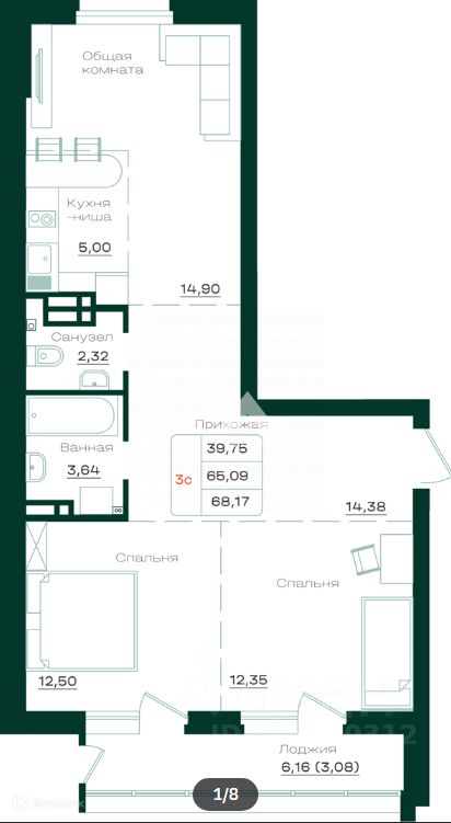 продам 3-к, Строителей проспект, 189 313 392 ₽