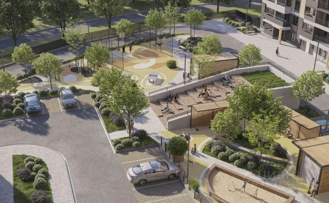 Территория комплекса закрытая, на ней ведется видеонаблюдение. Во дворах спроектированы современные детские и спортивные площадки, расположены зоны отдыха, выполнено озеленение. Для активного вида отдыха предусмотрена Workout зона и тренажеры на площадках. Для автовладельцев продуман подземный паркинг.