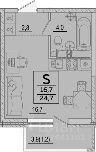 Общая площадь24,7 м2